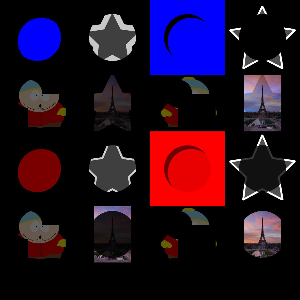 Demonstrate all 6 mask composition methods (Add, Subtract, Intersect, Difference, Lighten, Darken)